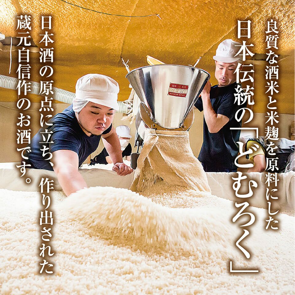 やさしい飲み口と、米の旨みが息づく味わいは、どむろくファンの皆さまには待望の新味として、また、日頃日本酒を召し上がらない方にも「飲みやすくおいしい日本酒」として、ご堪能いただけることでしょう。