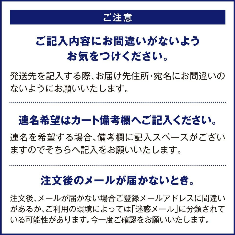 ・ご予約商品は商品名記載の出荷日に出荷いたします。 即日発送の商品と同時に注文の場合、ご予約商品の出荷日に同時出荷いたします。別送をご希望の場合、その旨を必ずカート備考欄に記載ください。